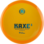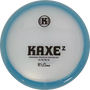 Precis som med den ursprungliga Kaxe har vi kallat den för en midrange driver, men den är lika mycket en fairway driver. En multifunktionsdisc helt enkelt. Kaxe Z kan hantera en anständig mängd hastighet och vind, men kommer också att prestera bättre än den typiska drivern när man inte kastar fullt så hårt. Med den här discen introducerar vi Z som i Zero, vilket symboliserar mindre stabilitet än original formen.